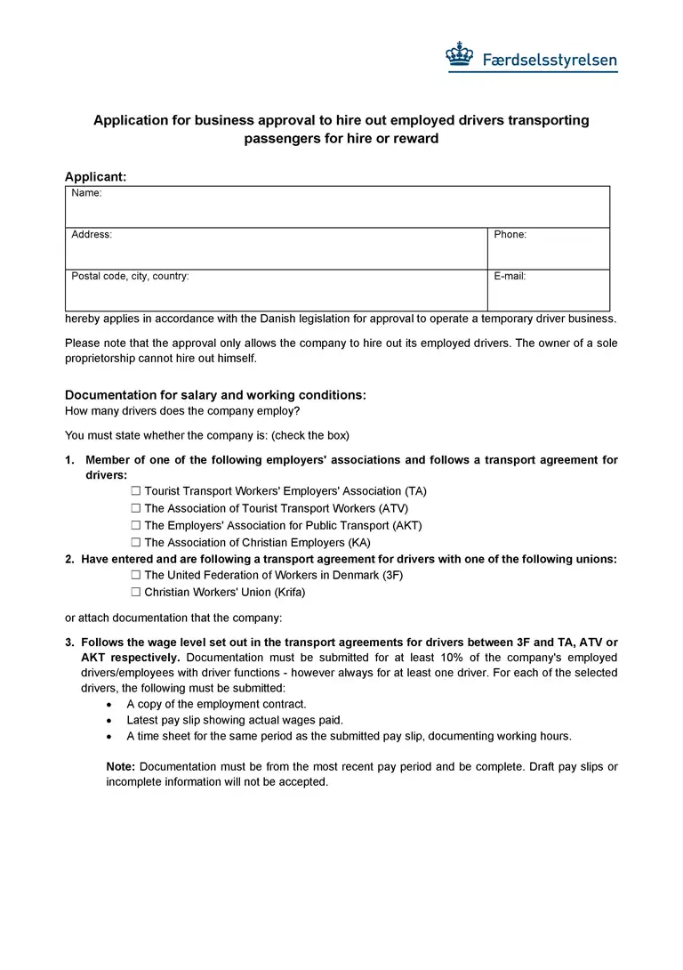 Use this form when you want to apply for a business approval to hire out employed drivers transporting passengers for hire or reward.